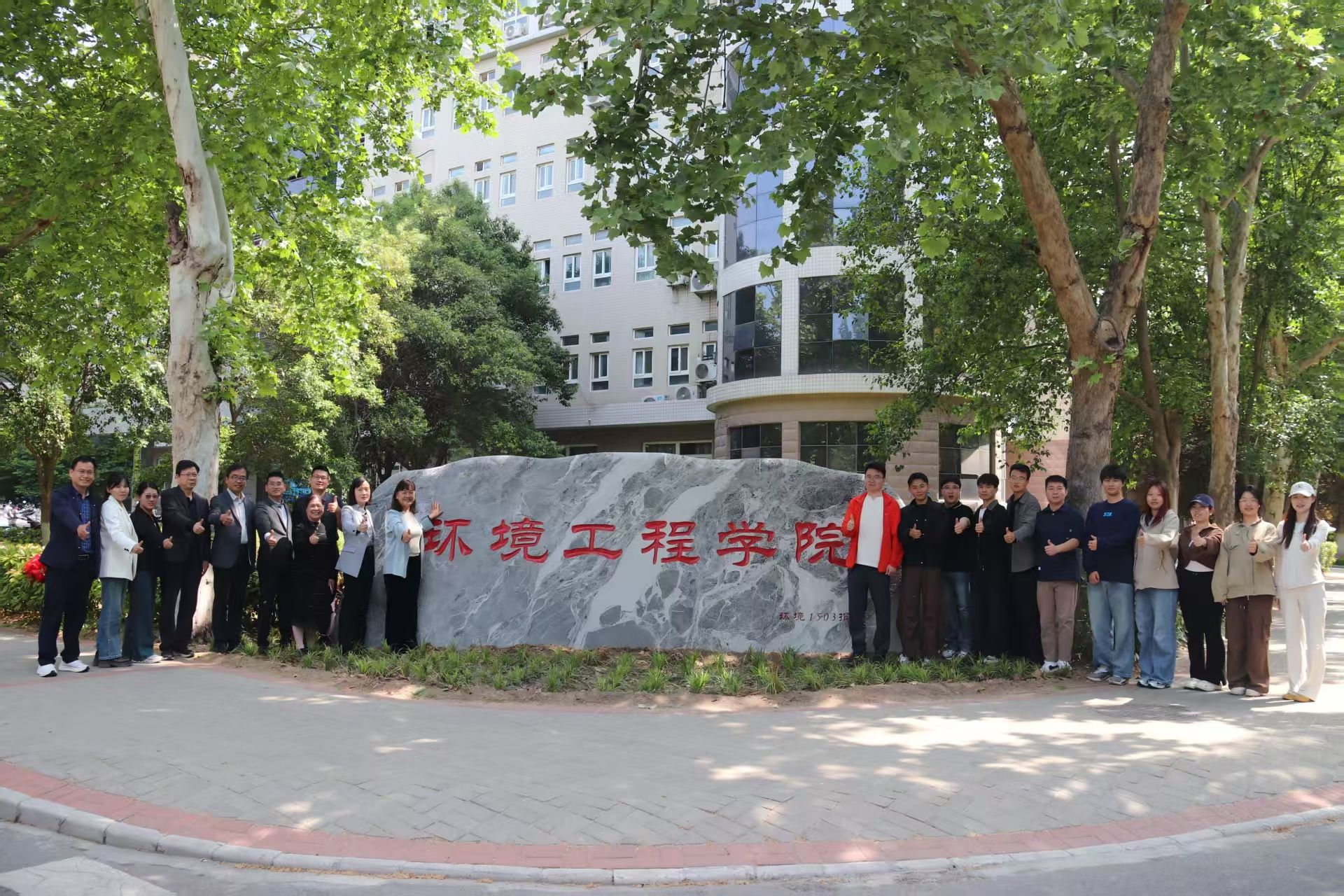 座谈会结束后,学院全体领导班子与捐赠校友代表乔东伍等共同为环境工程学院“院名石”揭幕,全体参会人员集体合影留念,定格此次重聚的珍贵瞬间。